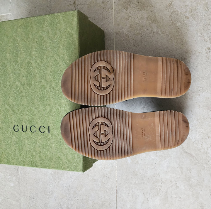 Gucci GG Angelina Platform Denim Slide Sandal Size 41